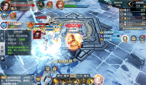 2)由于武神试炼为抢boss玩法,所以玩家可以根据个人意愿点击血条上方自由选择战斗模式: