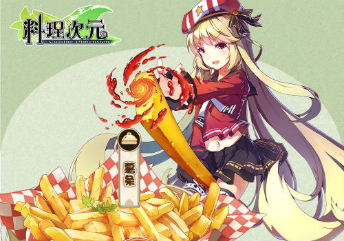 薯条是一种以马铃薯为原料,切成条状后油炸而成的食品,是现在最常见的快餐食品之一,流行于世界各地。在第一次世界大战的时候,美国士兵在比利时吃到了这种薯条,觉得特别美味,从而变得流行起来。游戏中的薯条是个酷爱时尚的开朗女孩。最喜欢的食物是番茄酱,一但闲下来就会十分的粘人。