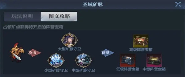 矿点守卫分为高级、中级、低级,击杀后可获得对应等级的阵营宝箱。