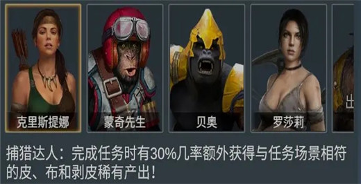 作为“捕猎达人”的【克里斯蒂娜】,可在完成任务时有30%几率额外获得与任务场景相符的皮、布和剥皮稀有产出!