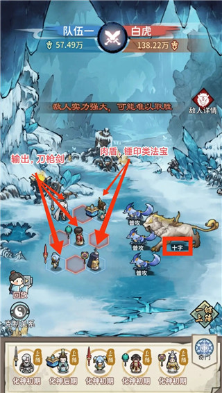 法宝: 看法宝的描述,结合对方的站位做出合适的 顺序调整,建议炼制刀枪锤类法宝优先