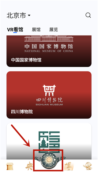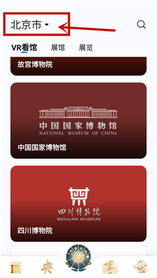 5、“博”导航栏中提供了中国各个地区博物馆展馆,用户可以点击上方地区或者“放大镜”搜索想看的博物馆;