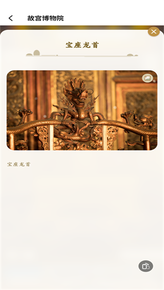 在博物馆详情页,顶部图片区域的右下角会显示虚拟展馆按钮,点击进入此博物馆的虚拟展馆。没有虚拟展馆的博物馆,此处不显示虚拟展馆按钮。