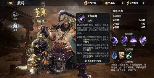 目前18资质里面比较拉胯的武将,但是董卓的唯一好处是获取难度非常容易,招募或者参加活动碎片就能兑换,是平民零氪玩家堆战力必备的武将。