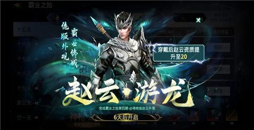 18资质赵云,做新手活动就会送一个,并且参加完霸业之史活动可以免费升成20资质金将