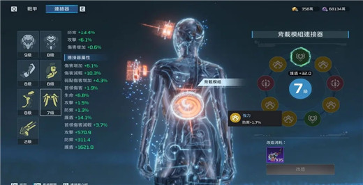 出第一台A级机甲后,解锁精良,整体点连接的属性一般,加百分比的属性较少。黄色点需要A级组件