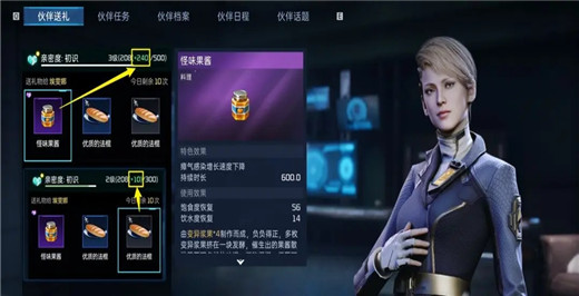 小知识点:使用这些稀有食材制作特定烹饪(如怪味果酱=变异浆果*4),将其赠送给伙伴会获得更多亲密度,助你更快解锁亲密度奖励!