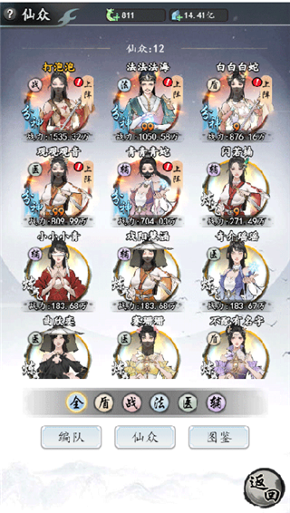 5、游戏中还有许多仙众角色,玩家可以通过培养和招募,让他们成为自己的得力助手