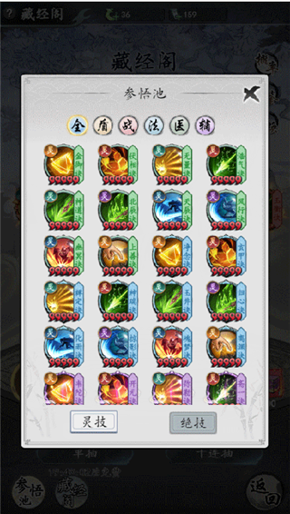 二、功法(指:仙众详情页下-灵、绝、身、神)