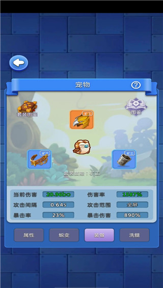 宠物初始1级,前20级就是帮我们打一下怪,没有其他技能;20级后开放蜕变,蜕变后拥有技能;30级后可以游历穿戴装备,装备增加宠物属性,并且套装拥有强大功能;40级开放洗髓,增加宠物伤害率。