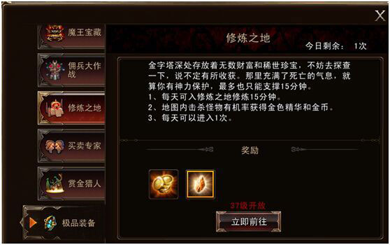 其次是“修炼之地”活动,同样是挂机刷怪,玩家将获得比普通野外更多的金币,并附带金色粉末。最后是”佣兵大作战“活动,通过佣兵守卫主角的游戏方式,成功闯关并击杀boss同样可以获得大把大把的金钱!