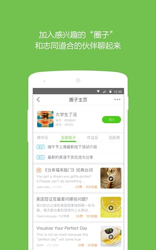 3、出现问题可以发帖子提问,有些高手会过来纠正你的错误。此外还有交流贴,用语音交流,最长可以达到120秒,还是比较好的。好多人虽然读音没那么标准,但是毕竟开口说是英语学习的开始。帖子可以关注;