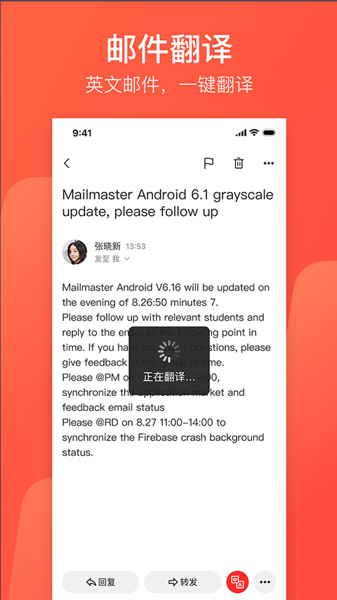 该软件破除了传统邮箱软件的束缚,即便在无网络信号的情况下,用户也无需担心邮件发送问题。只需预设邮件发送的具体时间,软件自动完成发送任务。这一功能对于那些出差在外、经常需要处理紧急邮件的商务人士来说,无疑是一项革命性的创新。不仅如此,无论是在手机上还是在平板、电脑上,信息的同步功能都让办公变得不受设备限制,随时随地处理工作成为了现实。有需要的小伙伴赶快下载网易邮箱大师app官方正版使用吧。