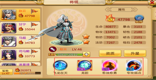 主公跟武将都有自己的专属技能。专属技能也可以升级。分为5个档次,效果逐级增加。