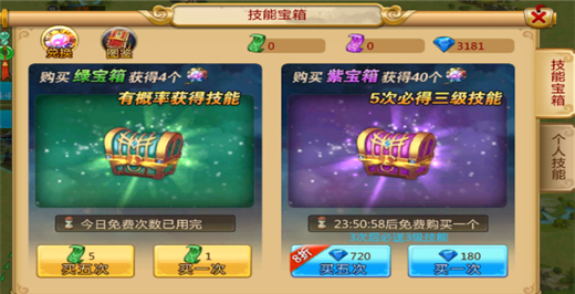 皇宫宝藏中也可以抽取到4级技能跟技能兑换石。