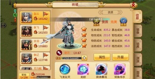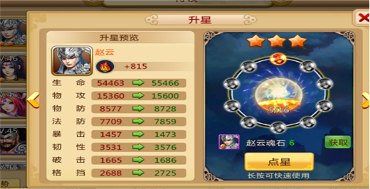 3、武将的升星可以提供武将的大量属性,占很大的一部分战力比重
