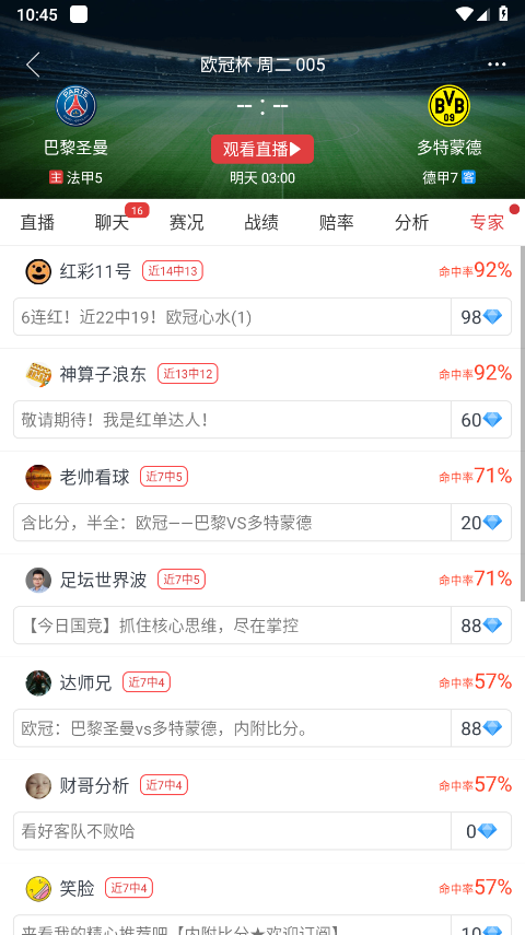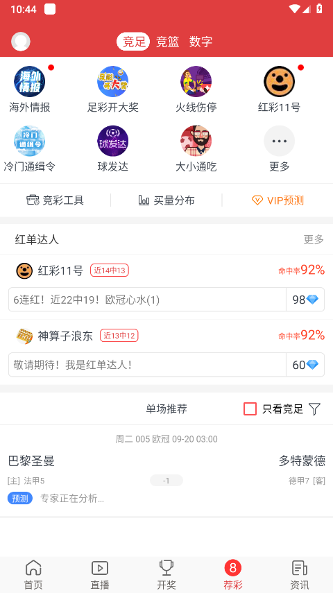 3、在此,您可以看到许多红单高手。点击下方的“专家预测”了解更多。