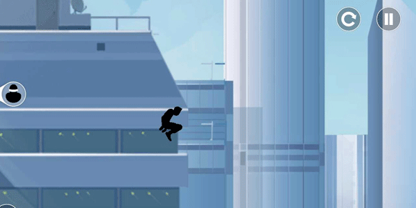 1、首先启动矢量跑酷中文版破解版游戏,直接越过开局左边的塔楼,无需控制角色将自动进入指定的走道。