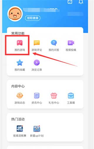 2、然后选择“我的游戏”。