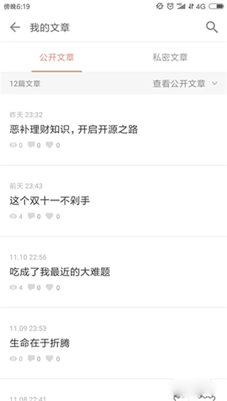 2、进入自己的文章列表后,选择自己本次需要向专题投稿的文章,并点击打开。