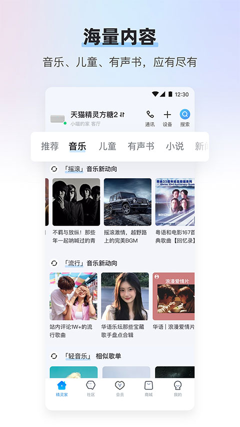 此外,天猫精灵app最新版还提供声纹管理、外卖地址设定、话费充值、电子书城、生活缴费等多项服务,为用户提供全面的智能生活体验,满足各种日常生活需求。应用现已开放下载,适合需要智能生活辅助的用户。