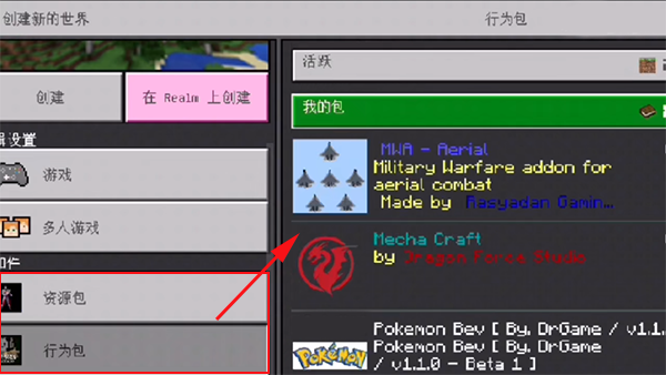 返回“我的世界”游戏,创建世界时,在“资源包”选项中选择刚才导入的mod模组。