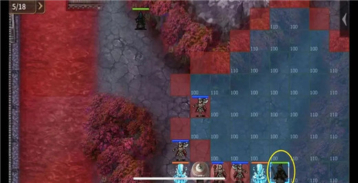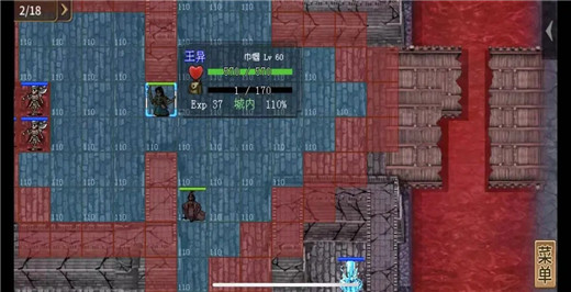 后两个回合王异往右退,注意不要脱离两个大将的攻击范围,退到下图位置,就一直保持在该位置抗住大将即可,没血自己吃药或者田丰用急救。至此左边搞定。