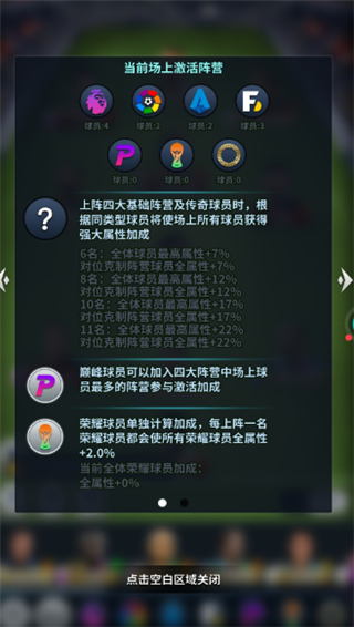 凑阵营加成是目前游戏前期也是最核心的玩法,因此凑满同阵营的球员越多,加成也就越大!