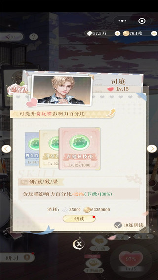 想打榜的可以提前囤物资,加战力最高的居然是男人,研读点几下就几十万几十万的升。其次是升猫的等级技能,然后是服装进阶。