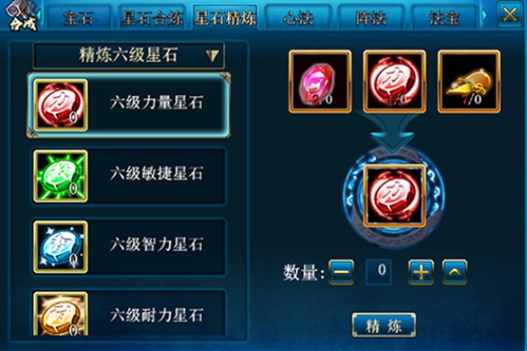 通过配方我们得知星石的合成路线分为两类,一类为星石合炼即宝石直接合炼同等级的星石,直接合成,短时间内见效,收益早。