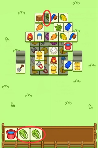 1、点击屏幕上方卡牌后,卡牌会移至下方栏框中。栏框可容纳7张卡牌,3张相同的卡牌即可消除。