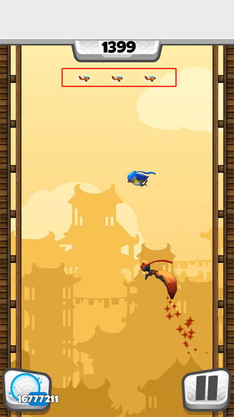 2、点击屏幕可以使角色在墙壁间跳跃;