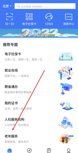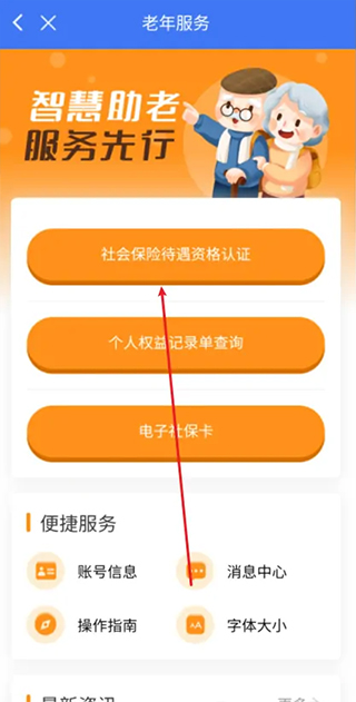 2、在老年服务界面中选择社保保险待遇资格认证。