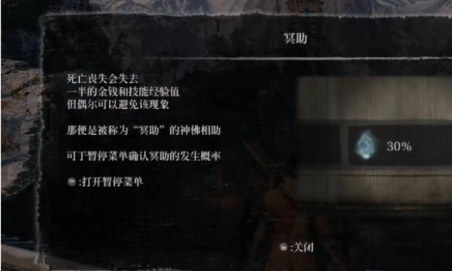 《只狼:影逝二度》中的冥助机制可以帮助玩家在战败时避免承受死亡的惩罚。在游戏中,玩家死亡会导致失去一半的经验和金钱。通过激活冥助,可以避免这种损失,但冥助的触发概率较低。