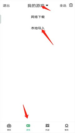 1、打开小马模拟器,点击“游戏”选项,点击“我的游戏”选项,然后点击“本地导入”选项。