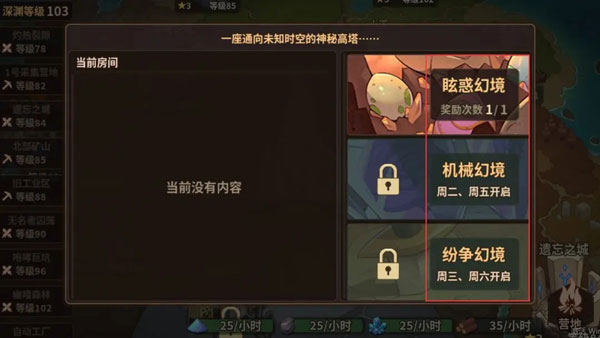 幻境之塔——4个多人副本,前三个轮换开启,周日开放特别副本。允许单人挑战。