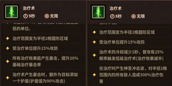 治疗技能,包括暴击治疗和普通攻击治疗。
