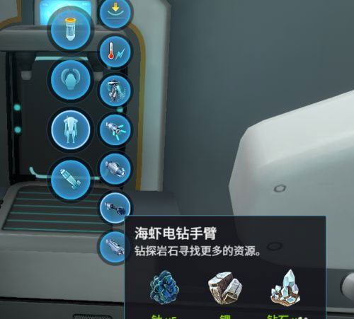 打开控制台,在海虾号内找到电钻手臂并进行制作。