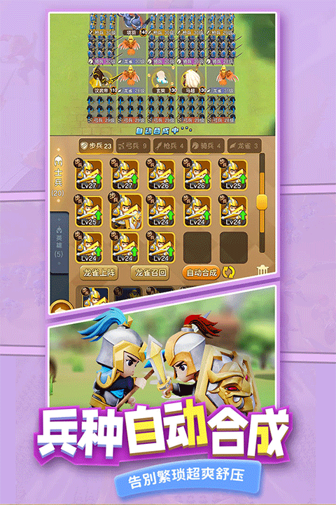 迷你军团九游版是一款三国背景Q版策略手游。游戏中的战斗系统充满策略性,独创的5x5棋盘布局让玩家在站前就能精心策划阵型。灵活运用阵营buff,预判战局变化,是取得胜利的关键。战斗中,兵种自动合成,技能无限叠加,让每一场对决都充满变数。无论是以智取胜,还是以力压人,都能在这里找到属于你的战斗方式。