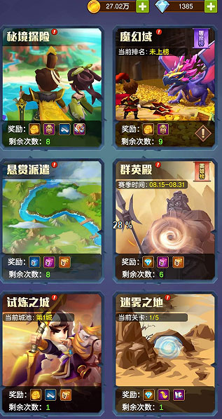 - 2星派遣:奖励2700金币和8精英角色碎片