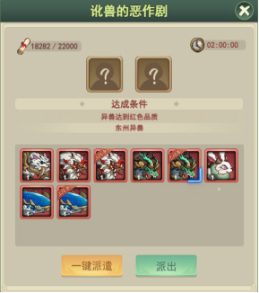2、异兽不可重复派遣,两个奇遇需要同一异兽时,需分批次进行派遣。