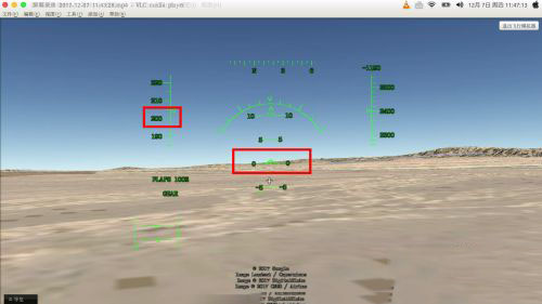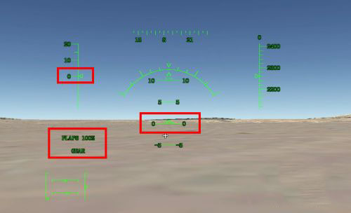 5、接近地面时,保持平衡,仪表盘数值在“0”附近,速度控制在200节以下。