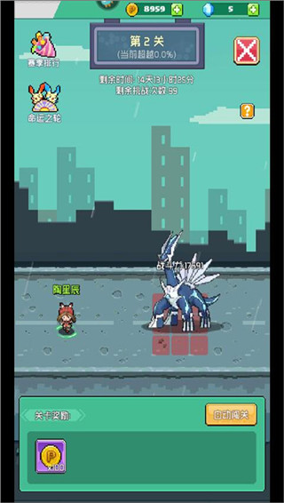4、除主线任务外,玩家还可以前往竞技场参与排行挑战,挑战胜利并且拥有一定排名的话也能够获得相应的金币;