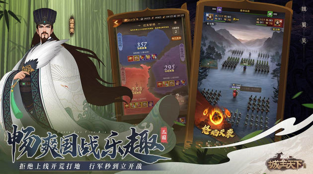 城主天下手游是一款非常受欢迎的国战题材策略手游,该游戏地将深厚的三国文化底蕴和精美的剪纸艺术风格相结合,为玩家们营造了一个非常真实且精美的三国世界!在这里你将化身为一位小城主,负责一座废弃城池的运营,开始属于是百废待兴的状态,人丁稀薄,兵力薄弱,经济基础也很差,随时都可能被敌对势力吞并,因此你需要迅速采取措施,通过不断升级做任务来获得相应的资源,组建军队,修建功能性的建筑,同时还要招募能工巧匠,武将谋士等等,不断增长经济,才能挽救这岌岌可危的局面!而在一切都有条不紊地进行中时,你也要思考一下对外作战的策略,规划好自己接下来的行动部署,派遣哪位将军攻占哪座城池是你所需要思考的,不断如此,既提升了你的军事素养,同时也对整个游戏的玩法有着深刻的理解!总之如果你渴望在三国乱世中找寻自己的梦想,享受指尖智谋与战斗的激情,那么快来本站下载这款城主天下手游尽情体验吧!