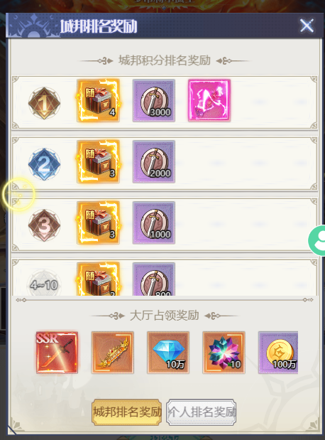 城主争夺,活动时间为周二的20:40-22:30,奖励如下(注意:开服第二天的20:40-22:30开始,可重复挑战,只记录单词最高伤害);