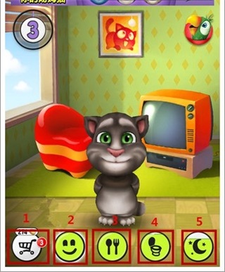 点击后将带领汤姆猫到客厅,这里你可以和它进行各种互动,还可以玩游戏。