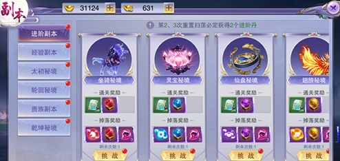 1、进入副本进阶副本产出各进阶系统进阶所需材料,是人物成长、坐骑进阶、神兵升级等道具的重要来源之一。点击挑战即可进入副本。