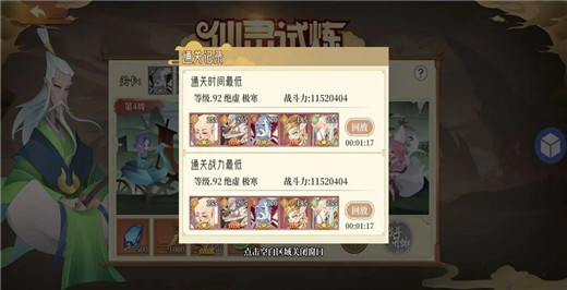 (1)450万战力过①过第一周的仙灵试炼第一套阵容: