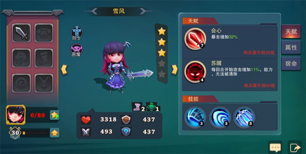 雪风:恶魔剑士,以纯粹伤害著称。6剑阵容的关键牌,拥有超强成长天赋,能在短时间内大幅提升输出。但作为近战佣兵,面对控制技能时,雪风可能会遇到困难。