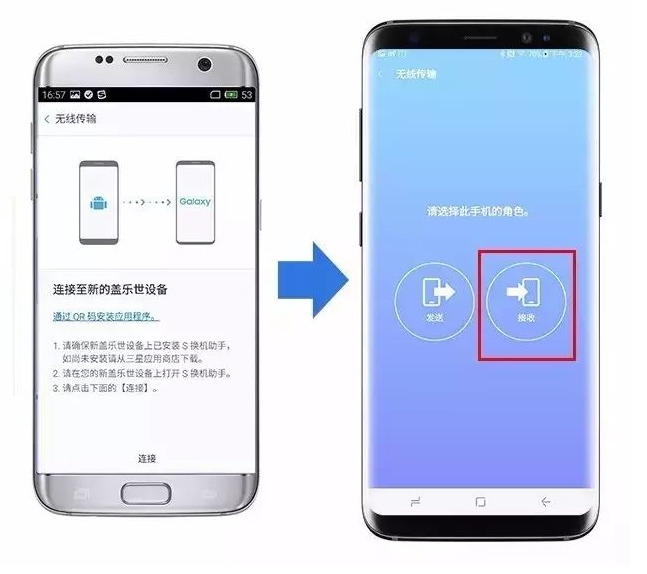 2、建立新旧手机的连接,选择哪部手机是【发送】方,哪部手机是【接收】方,选择好点击即可。